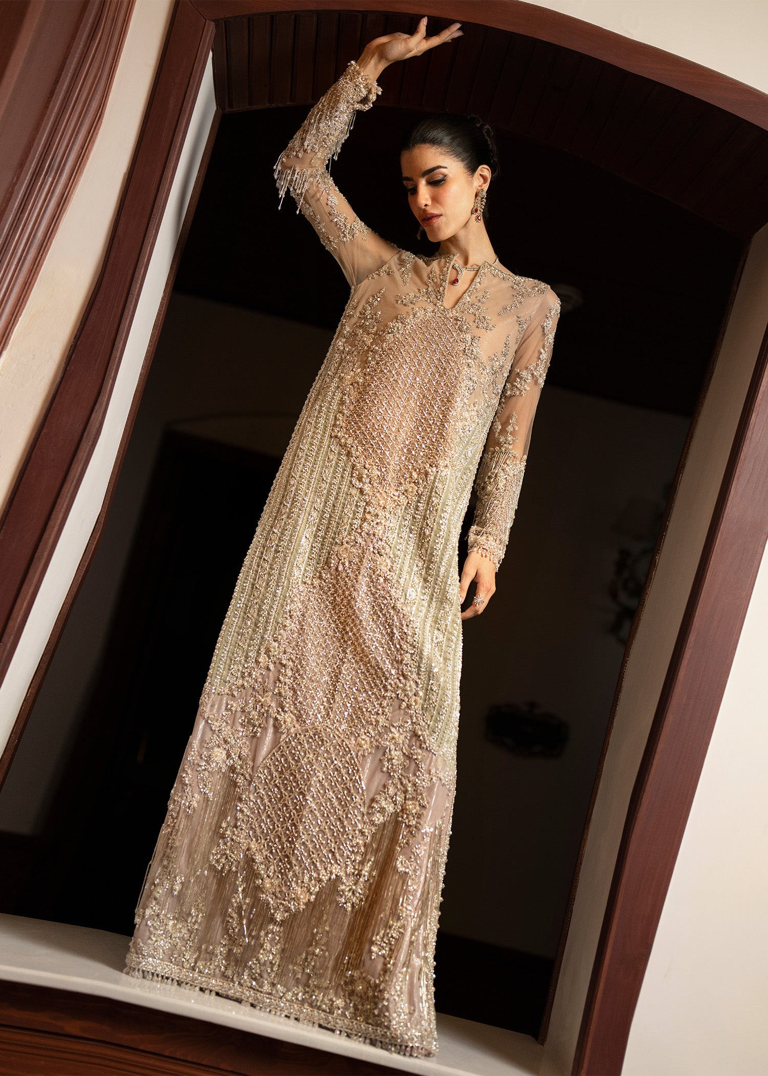 Work Details: Dabka, Naqshi, Pearl Sequins Thread Embellishments