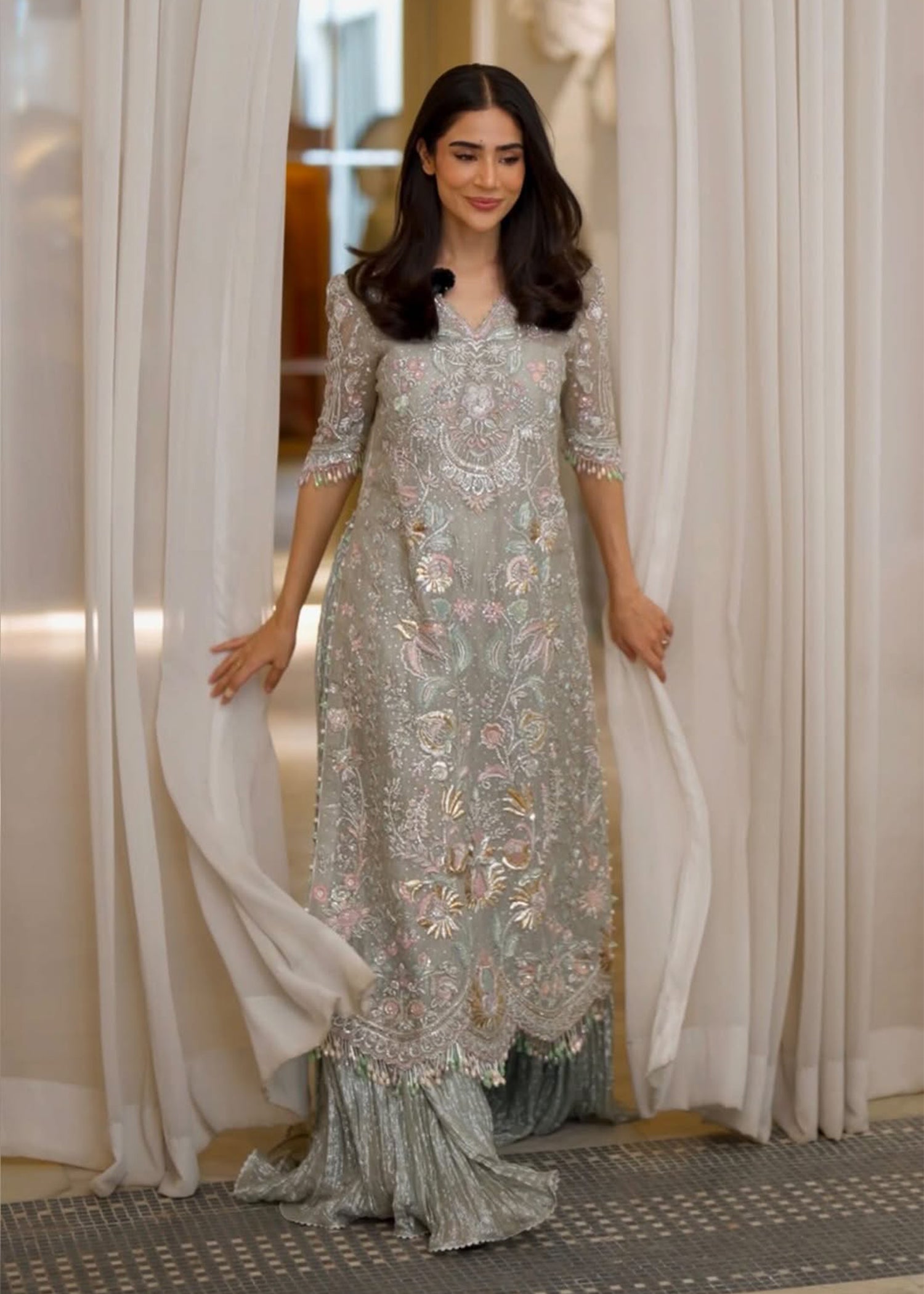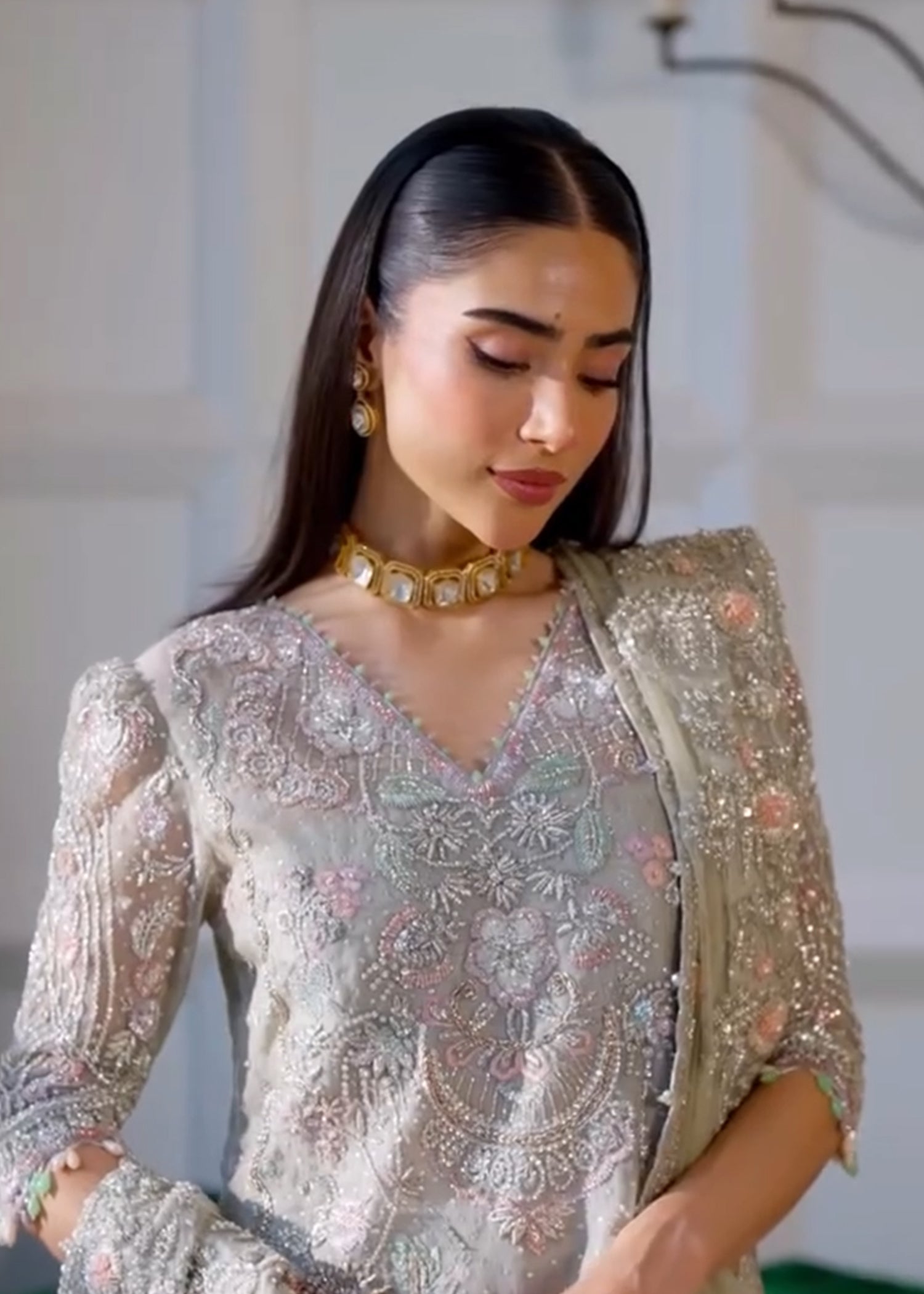 Work Details: Dabka, Naqshi, Pearl Sequins Thread Embellishments